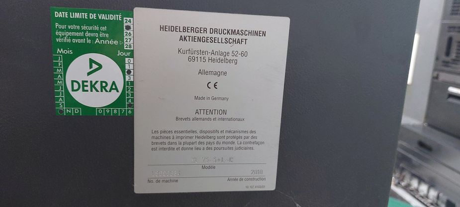год выпуска 2010, пробег 160 млн, High Pile Extended Delivery (X2) · COATING UNIT with Chambered Ductor Blade with Anilox Roller 13cm3 per m² · Infra-Red Dryer · PRINECT PRESS CENTER · SPEED : 15.000 Sheets Per Hour · Prinect INPRESS CONTROL (Inline Color and Register Measurement System) · Heidelberg AUTOPLATE · ALCOLOR dampening with VARIO · Ink Temperature Control · Technotrans Central Refrigeration CombiStar with Alcosmart – air cooled · Steel Plate in feeder and delivery · Chromed cylinders · Antistatic device in feeder and delivery · AIRSTAR PRO (Air Supply Cabinet – air cooled) · Pneumatic compressor with compressed air dryer · Weko AP 262 Powder Spray
