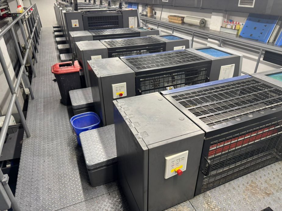 год выпуска 2010, пробег 175 млн, Гибрид, Heidelberg HD XL 75-6+LYYL-F X3 Hybride 6 color + double coater + extend delivery X3 with IR/UV size: 60,5 x 75 cm built: 2010 Speed 15000 sheet/hour Counter : 173 mio imp approx Specifications; Press Center Alcolor Dampening Technotrans refrigeration Combistar CAN Ink Agitators for UV Ink Autoplate Auto roller washer Auto blanket washer Auto Imp Cylinder Washer Ink Temperature Control Preset Plus Feeder Preset Plus Delivery Manual Non Stop Feeder and Delivery Ultrasonic Double Sheet Detector Extended Delivery X(3) Elevated Machine 50 cm Foil Kit Weko AP262 Powder Spray Coating units with 3 x Coating Pump IR/UV drying system UV interdeck after Unit 1,2,5+6 plus change positions IR Interdeck in Unit Y1 Hot Air interdeck in Unit Y1 IR /Hot Air/UV with 3 UV lamps in the delivery