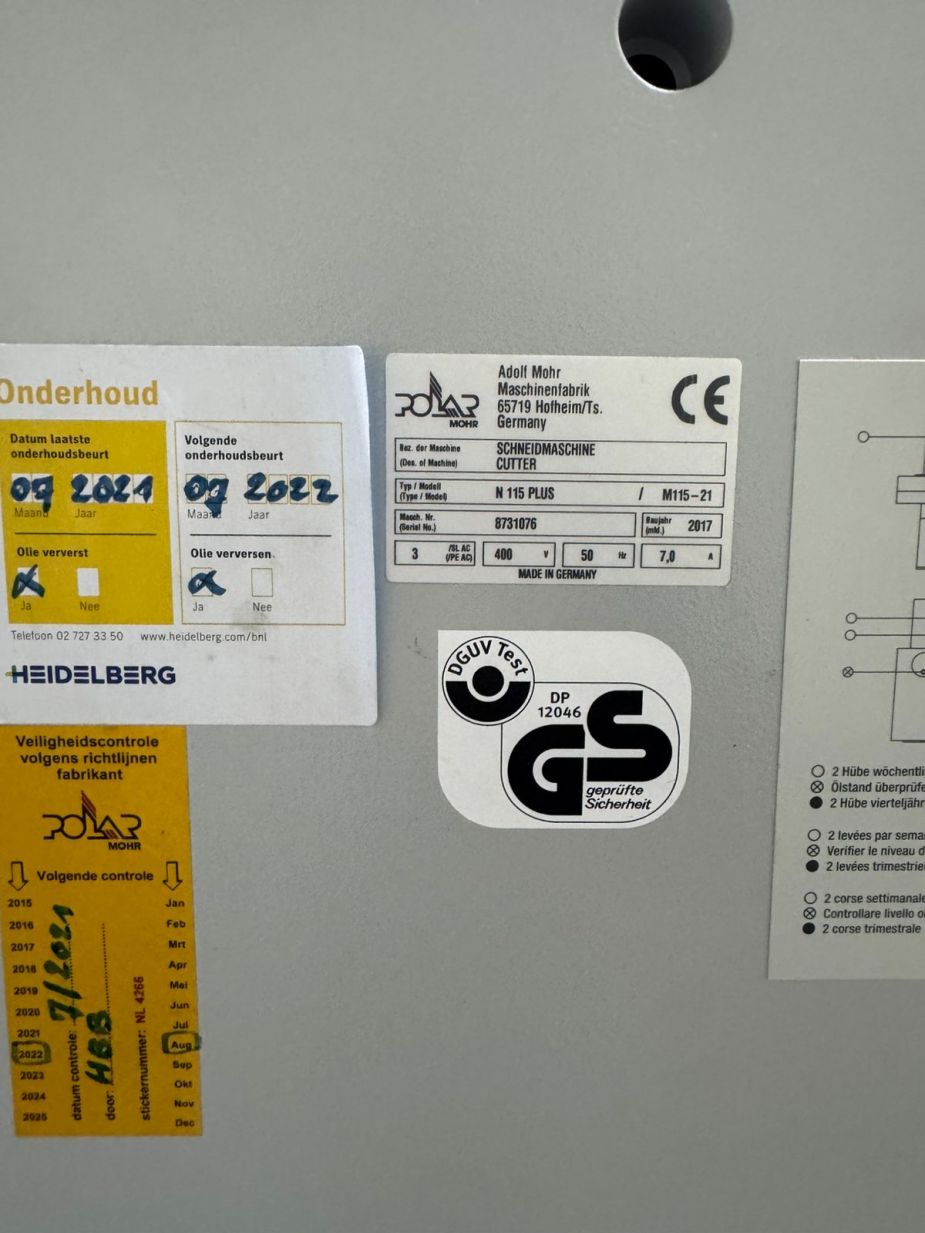 год выпуска 2017, привезен из Европы в 2024, в отличном состоянии, максимальная ширина реза — 1150 мм; высота стопы — 165 мм; скорость работы — до 45 циклов в минуту;допустимая ширина реза — от 25 до 115 см; мощность электродвигателя — 5 кВт; толщина ножа — 13,75 мм;скорость движения подавателя — до 30 см в секунду; габариты машины: длина — 256 см, ширина — 236 см, высота — 171 см; вес нетто — 3230 кг.