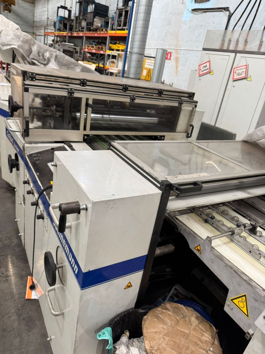 год выпуска 2008, Линия УФ-лакирования максимальня скорость 5.000 листов в час можно работать на бумаге и картоне: плотность материала от 70 до 400 гр/кв.м конфигурация: самонаклад, каландрирование листа, лакировка, сушка, приемка максимальный формат листа 540х740 мм минимальный формат листа 210х280 мм диаметр вала нанесения Уф-лака 242 мм, "воздушный нож" отличное рабочее состояние