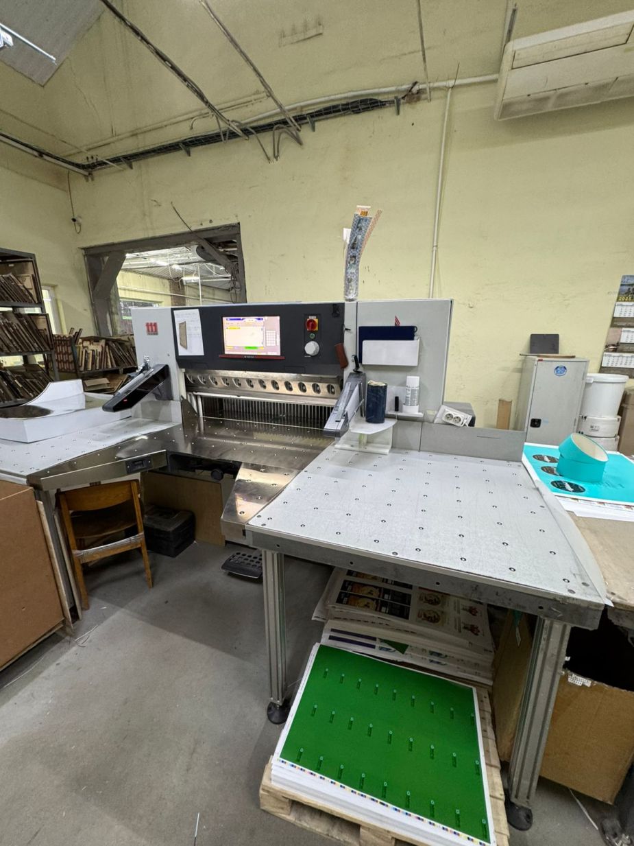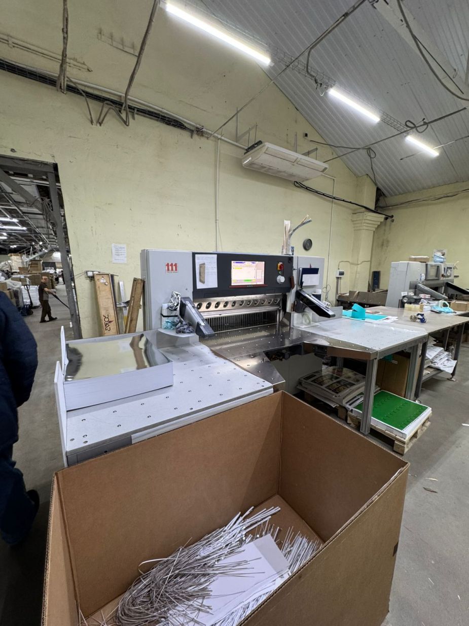 год выпуска 2017, привезен из Европы в 2024, в отличном состоянии, максимальная ширина реза — 1150 мм; высота стопы — 165 мм; скорость работы — до 45 циклов в минуту;допустимая ширина реза — от 25 до 115 см; мощность электродвигателя — 5 кВт; толщина ножа — 13,75 мм;скорость движения подавателя — до 30 см в секунду; габариты машины: длина — 256 см, ширина — 236 см, высота — 171 см; вес нетто — 3230 кг.