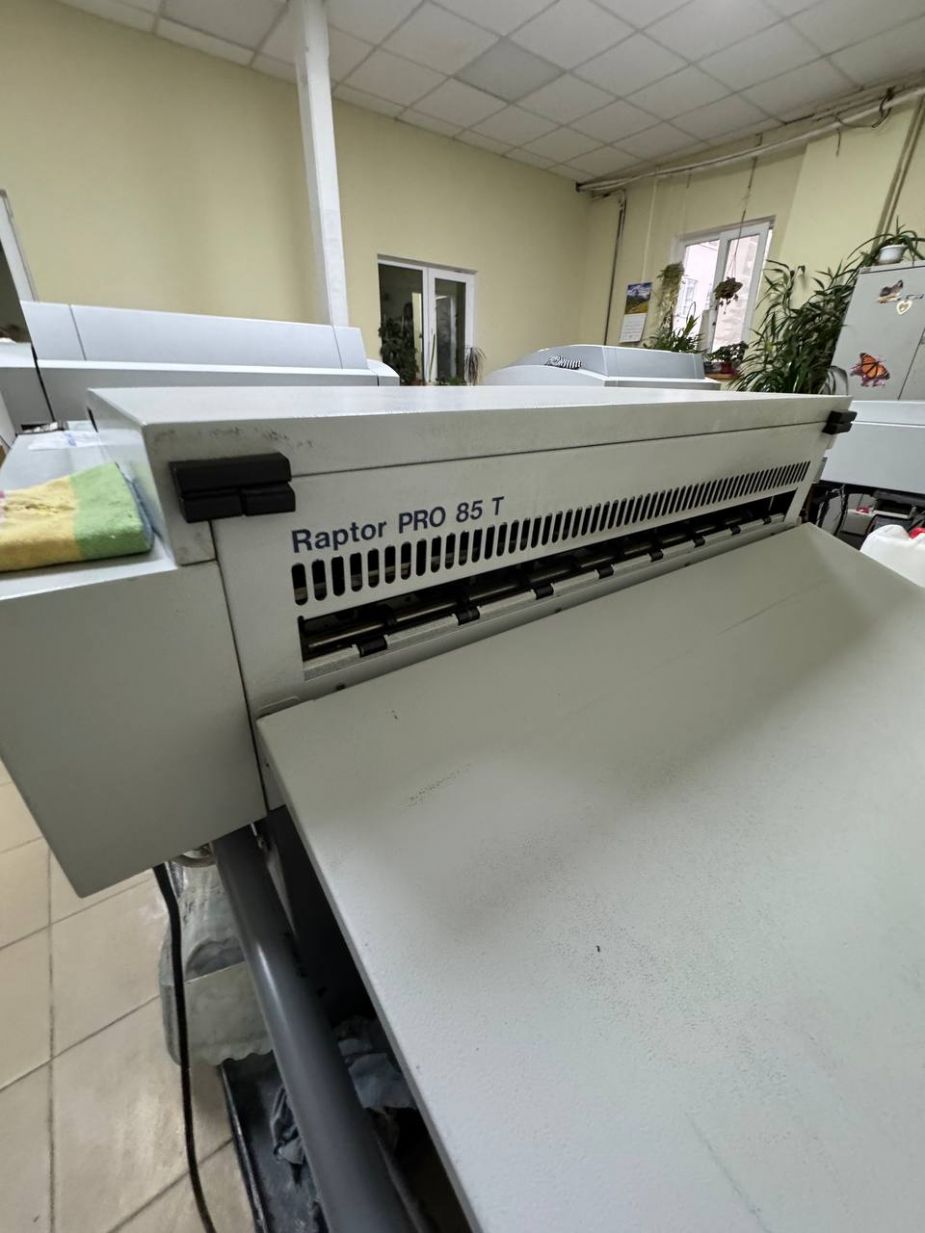 г.в. 20011, он лайн проявка G&J Raptor 85, Metashooter, Metadimention, пробивка штифтов, Скорость работы: 17 пластина в час. Максимальный и минимальный размер пластин: 670×760 мм / 240×240 мм. Разрешение: 2400 или 2540 dpi. Толщина печатной формы: 0,15–0,3 мм.
